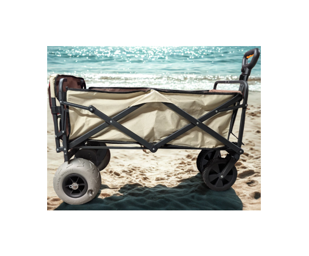 Mo-B cart is a motor-assist foldable beach cart. It helps take the pain out of lugging your gear across the sand. Even though it's motorized, it folds & fits in the trunk of most cars! Note: Variations in appearance may occur due to ongoing innovation.