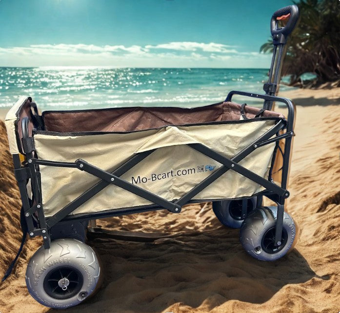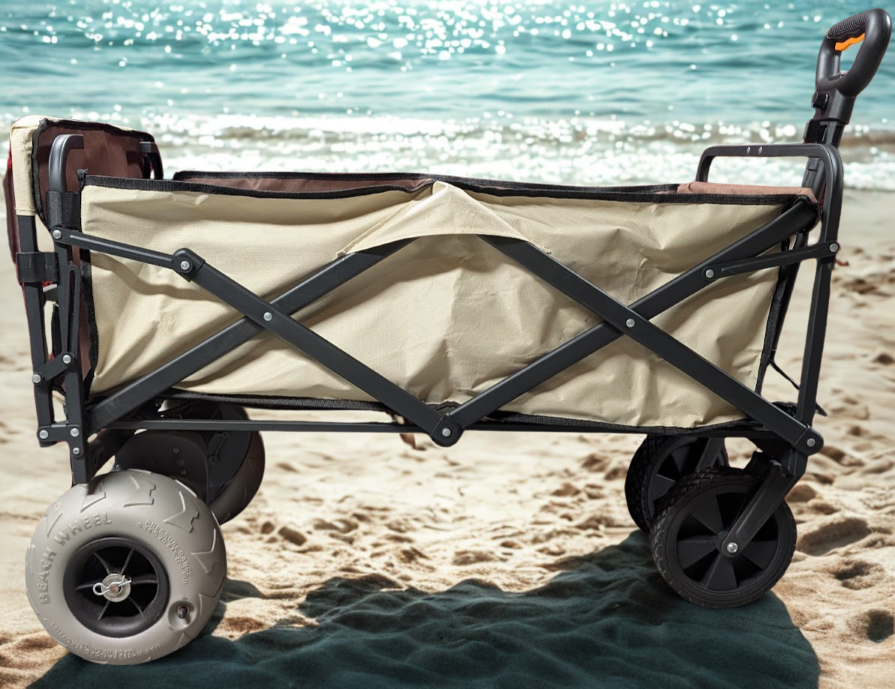 This cart is a motor assist foldable cart, which can fit in the trunk of a car, and takes away a lot of the pain of lugging gear across soft sand.